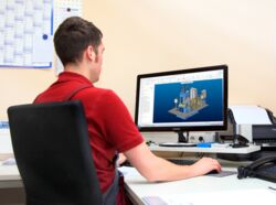 Mit Hilfe unseres CAD-System (Creo ), konstruieren wir für Sie die komplette Anlage in 3D ( Volumenkonstruktion ).